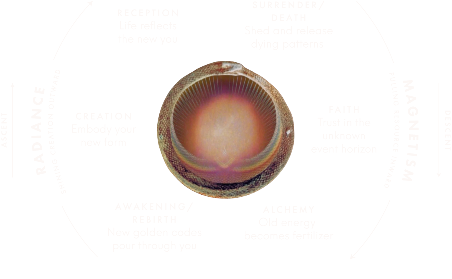 The wisdom of the Ouroboros (snake eating its tail) demonstrates how, when we eroticize our deepest desires and longings, they become nourishment, and this opening transforms into a magnetic invitation that pulls them into our field.